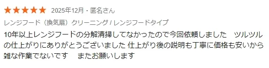 清掃完了後、嬉しい口コミも書いて頂き感謝です!